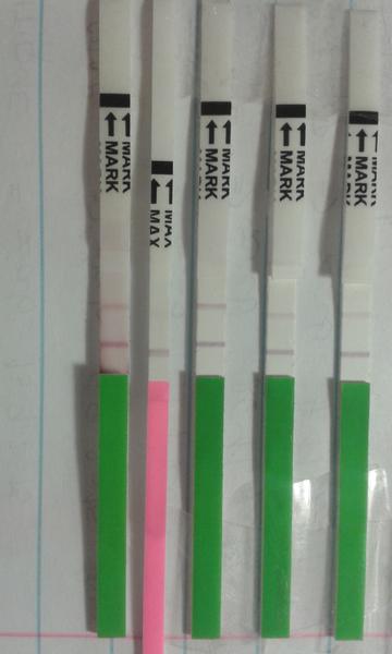 @lauritkatesty tá čiarka je naživo farebne skoro rovnaká,len sa mi to nedá teraz dobre odfotiť....ružový je jasne negatívny pritom je 10, nemal by byť silnejší?