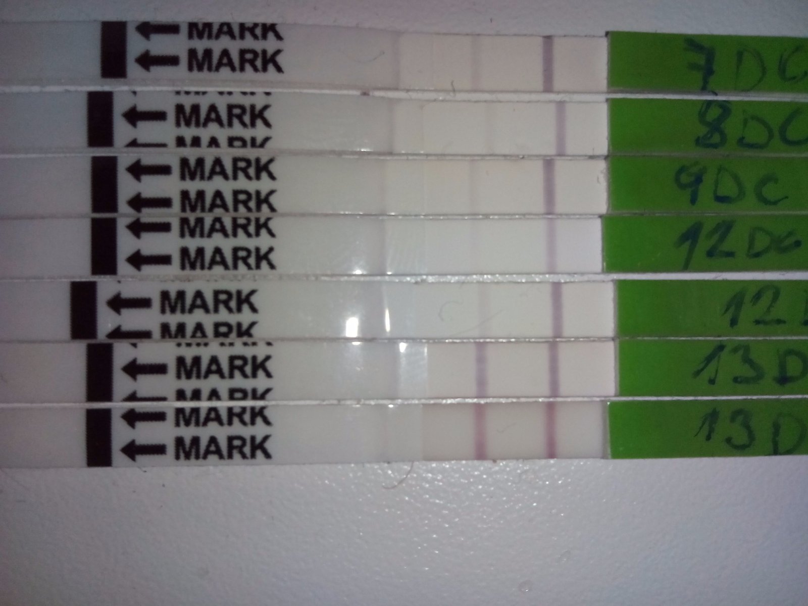 @la.bella noooo,uuuplne pozitivny nie je ani jeden,ale to nic nemusi znamenat.Keby si merala BT,vedela by si to presnejsie.Ono okolo toho 14-15 DC cyklu mohla ovulka skutocne prebehnut,lebo ten 13DC druhy test sa mi zda najsilnejsi.Ake dlhe mavas cykly?Uz ti nezostava nic ine,iba cakat co bude.🙂
