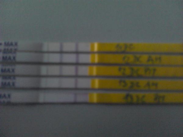Babulky mne takto pekne ukázalo pozitívny na 11 DC a keďže teplota taká kadejaká, tak som pekne testovala ďalej a krásne slabol až po ten spodný. 🙂 Hore je pozitívny 🙂 OVU test. Teraz budem čakať, aby som mala takú postupnosť pri tehu testíkoch, ale samozrejme opačnú. od najslabšieho po najtmavšie 🙂