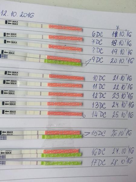 @barborapavlikova hormon sa vylučuje celý mesiac, dôležité je, že nie je testovacia čiarka silnejšia ako vzorová. Podla testov ovu mala prebehnúť 16/17 DC