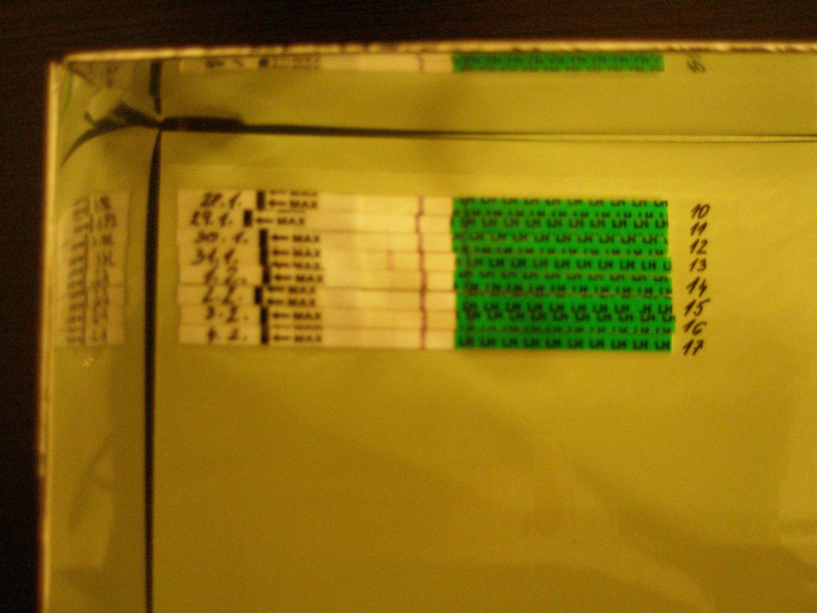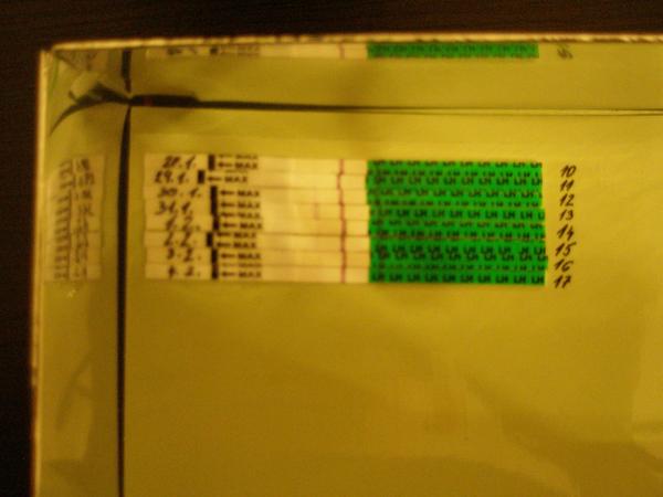 Robím ovu testy 1-krát ..... testujem od 10-teho dňa cca o 13.00 hod ..... na ten 13-ty den som mala najsilnejsiu čiarku, inak stále uplne slabulinka (nie je vidiet dobre na foto) ...... ale čiarka nie je rovnako silna ako tá testovacia ..... dokedy treba testovať ? nevyznam sa v tom .... podla ovulačnej kalkulačky by som mala mať plodné dni od 1 do 5 februára .... ale čiarky tomu vobec nenasvedcuju :(