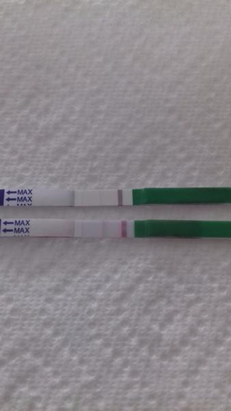 Druhý test (ružový) je značka MaybeBaby strip - a ten ukazuje negatívny výsledok, keďže čiarka je slabšia. Ktoremu mam teda veriť? Ďakujem