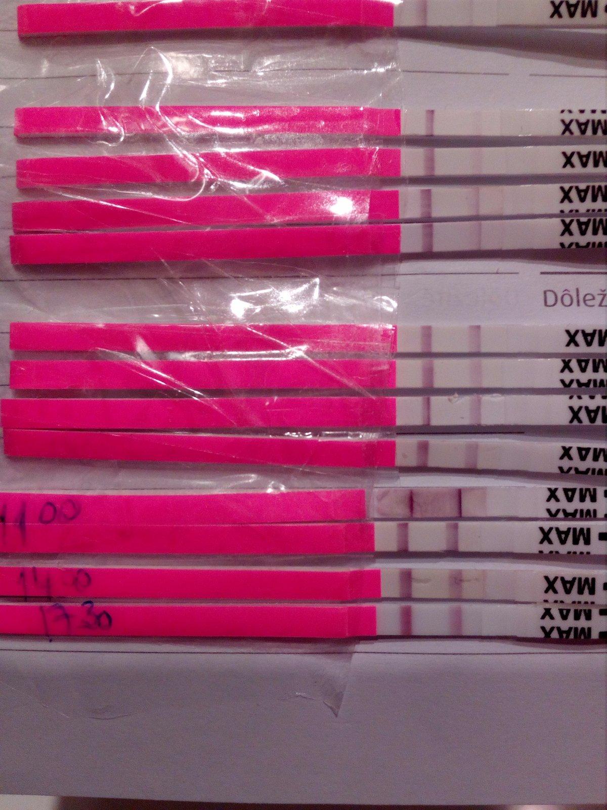 tie z minuleho cyhlu som odfotila len niektore. ten prvy nie, lebo som si povedala, ze to az tak sledovat nebudem a posledny, ked uz som myslela, ze je po ovulke, ten tiez nie a uz som ich vyhodila. takze mam len 4 pozitivne. tu ej foto.