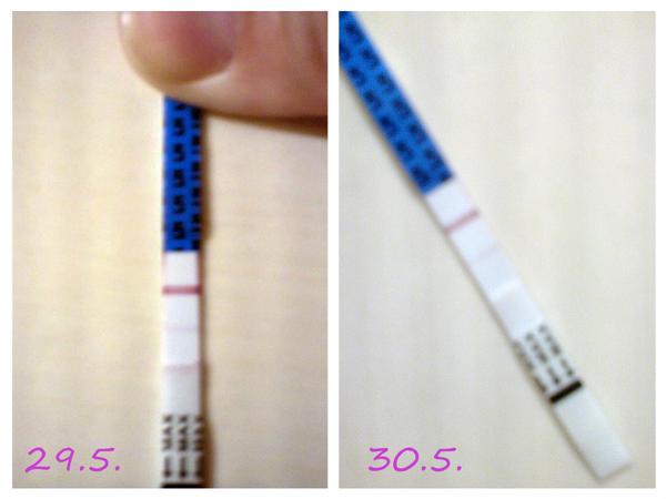 @lauritka Tak hlienu mam menej ale stale mam. Testik nam tmavne. Co myslite priblizujem sa k ovulacii? Poslednu menstruaciu som mala 16.5., no mala som vtedy dlhy 45 dnovy cyklus kvoli cyste na vajecniku, predtym som mavala 27 dnovy cyklus. (porovnajte s foto vyssie)