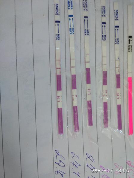Kocky prosim Vas, ake mate skusenosti s tymto tehotenskym testom? Posledna menstruacia zacala 8.7. a pozitivny ovulacny test som mala 20. 7., dnes som bola nedockava a spravila som si tehu test a vysla uuuuuplne slabulinka druha ciarka. Cyklus mavam 26-28 dnovy, ked som mala cystu na vajecniku bol cyklus dlhsi. Posledny cyklus bol len 25 dnovy a ak dam, zeby som mala mat teraz 26 dnovy cyklus, tak mrcha by mala dojst najskor vo stvrtok. Dnes rano toto prekvapilo aj ked je este len pondelok. Prikladam foto! Dakujem!!!