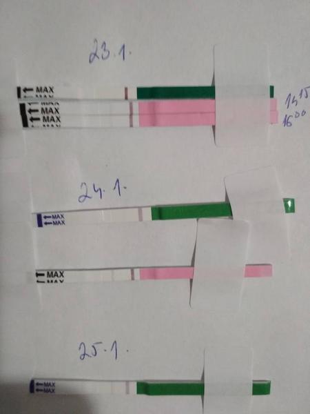 Ahojte, ovulacne testy si robim prvykrat v zivote. Nikdy som si nemyslela ze budem davat ocikane palicky na internet, ale tuzba po mimi je vacsia :D Pekne prosim, dnesny test je uz pozitivny? mam dve znacky (zeleny je dr. Max a ruzovy pepino). Ide hlavne o to, ze ci "hon" 😀 na manzela ma byt dnes alebo pockat aky bude test zajtra? Nechcem zas "plytvat "materialom"" kedze vraj aj spermie potrebuju zosilniet ...(posledny ps bol v stredu vecer, takze to by este mohli byt dake zive dnu...). Ten neoznaceny je tiez z dneska, fotene asi 10min skor, teda v case kedy sa to ma odcitavat....Dakujem!