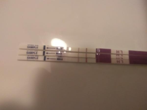 Ahojte.myslíte,že môže byť už pozitívny? Zhora:včera podvečer, dnes obed a dnes večer. Testovacej chýbal mini kúsok do rovnako silnej a dnes večer už slabšia ako na obed. Keďže menzes som tento rok mala 2 krát a jedno dvojdňové špinenie šli sme včera na to a dnes to poistime. Keď počítam to špinenie tak včera 16DC.