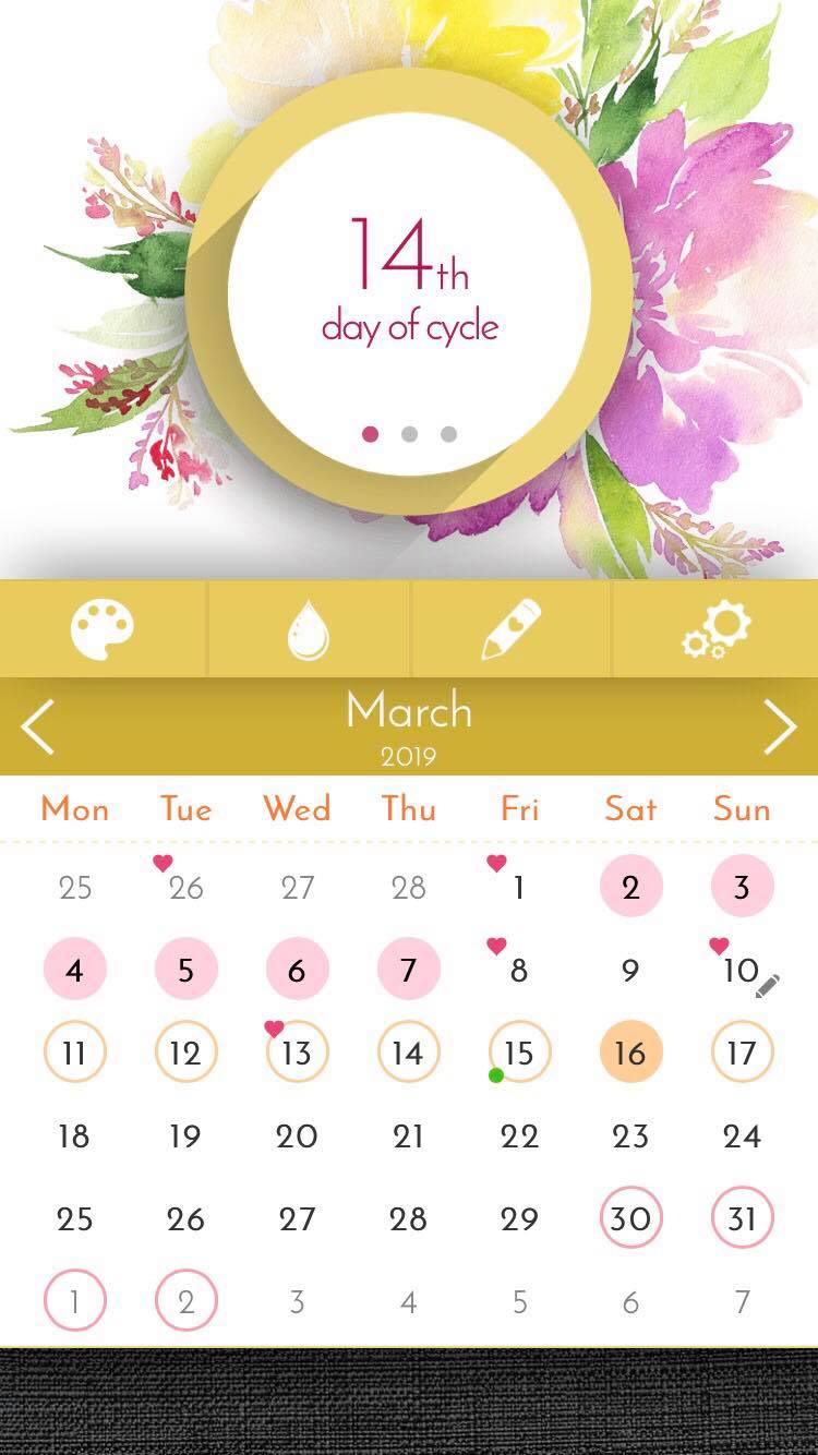Pridávam fotku z appky, kde si všetko zaznamenávam. Srdiečka znamenjú pohlavný styk, orandžové dni sú plodné, červené znázorňujú menštruáciu.