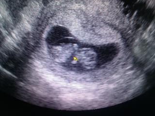 taaaaaaaakze... krpec nam rastie ako z vody 😵 podla ms som dnes 9 +0, podla utv 9+5 🙂 srdiecko bilo o 106 😵 krpec sa hybal, reagoval na lekarku, ked sa ho snazila prinutit viac k cinnosti 😀 ale ked prisiel manzel dnu, aby videl krpca, tak ako na povel prestalo 😀 ale manzel povedal, ze nejaky pohyb zachytil, ale vela nie. potom sa krpec uz odmietol pohnut 😀 fotku mame z mobilu... ale to najdolezitejsie vidno 😉 ta zlta vec je myska... lekarka ukazovala manzelovi, kde je srdiecko 🙂 07.02. mame poradnu a tam uz dostaneme aj tehu knizku. konecne 😀 aha a este rozmery... jedno bolo 2.7 a druhe 4.3... len uz neviem, co je dlzka a co vaha 😀