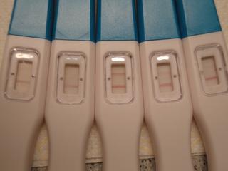 ahojte ... pripájam foto mojich ovu testov (11.-15. DC) ... som z toho trošku jeleň, myslíte že už nastala ovu, všade sa píše, že tá testovacia čiarka má byť rovnaká, až výraznejšia, ale ten moj stredný test má takú slabšiu 😖 , dnes (16 DC) už bola skoro neviditeľná..... dík za postrehy 🙂 .... ozaj, testovala som vždy cca o 18.00 a dve hod. predtým som nepila