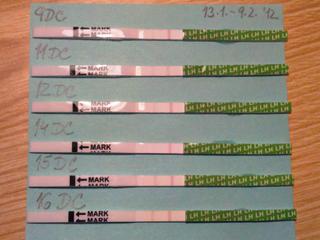 Mám otázku ohľadne hladiny LH hormónu. Na fotke vidno ovu testy s najsilnejsou testovacou ciarkou na 15DC a 16DC, vcera a dnes (18DC) je uz velmi slaba. Viem, ze nie je taka silna, ako sa vsade pise, ale viem aj to, ze to nemusi znamenat, ze ovu nebola. Otázka ale znie - ak ovu bola a podarilo sa mi otehotniet, je mozne, zeby sa LH hormon neukazal na testoch teraz, ale neskor, o par dni ? Alebo su znakom otehotnenia prave // na ovulacnom teste od ovulacie nepretrzite?