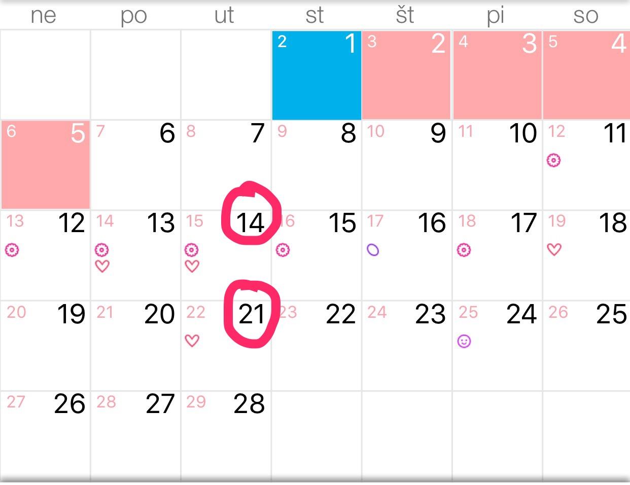 ovuláciu mi síce ukazuje aplikácia okolo 16.2. Ale neviem to potvrdiť pretože ju neviem rozoznať a správne určiť. Nemerám teplotu ani nerobím ovu testy. Je to len hrubý odhad aplikácie ktorá sa môže samozrejme mýliť. Posledná menštruácia mi začala 31.1. A dnes som mala dostať dalšiu. Stáva sa že mi nechodí presne takže rozdiel jeden dva dni je bežný ale pred menštruáciou nemávam skoro žiaden výtok ale skôr suché nohavičky a dnes sa mi spustil večer teda celkom dosť len tak zrazu. Hustejší, bielo priesvitný ...okrem toho ma do včera brutál boleli prsia ale to môže byť aj prichádzajúca mrška. Myslíte, že by z toho čosi mohlo byť? Je zajtra ak to v noci nepríde ešte priskoro na test? Ďakujem a pekný večer 🙂