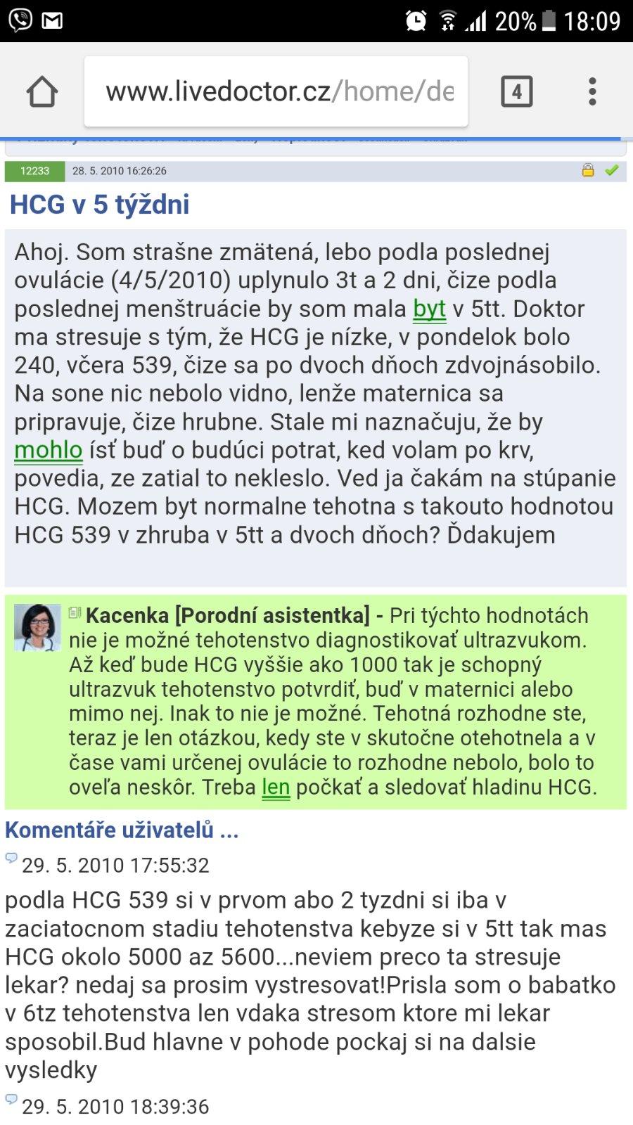 @alilka TOTO SI PISALA LALE!!! OKOPIROVANY TVOJ PRISPEVOK. SA SMEJES NA TOM ESTE. "mne to povedali 3lekari u ktorých som aj bola viacnásobné na sono..a HCG som mala na konci 300..aj na nete je to všade napísané.. ale tak nebudem niekomu pretláčať pravdu,keď mi nechcú veriť  ale s týmto som si istá. A dupľom nie pri HCG 50..tam môže byť Max vidieť zvýšenú sliznicu nic viac "