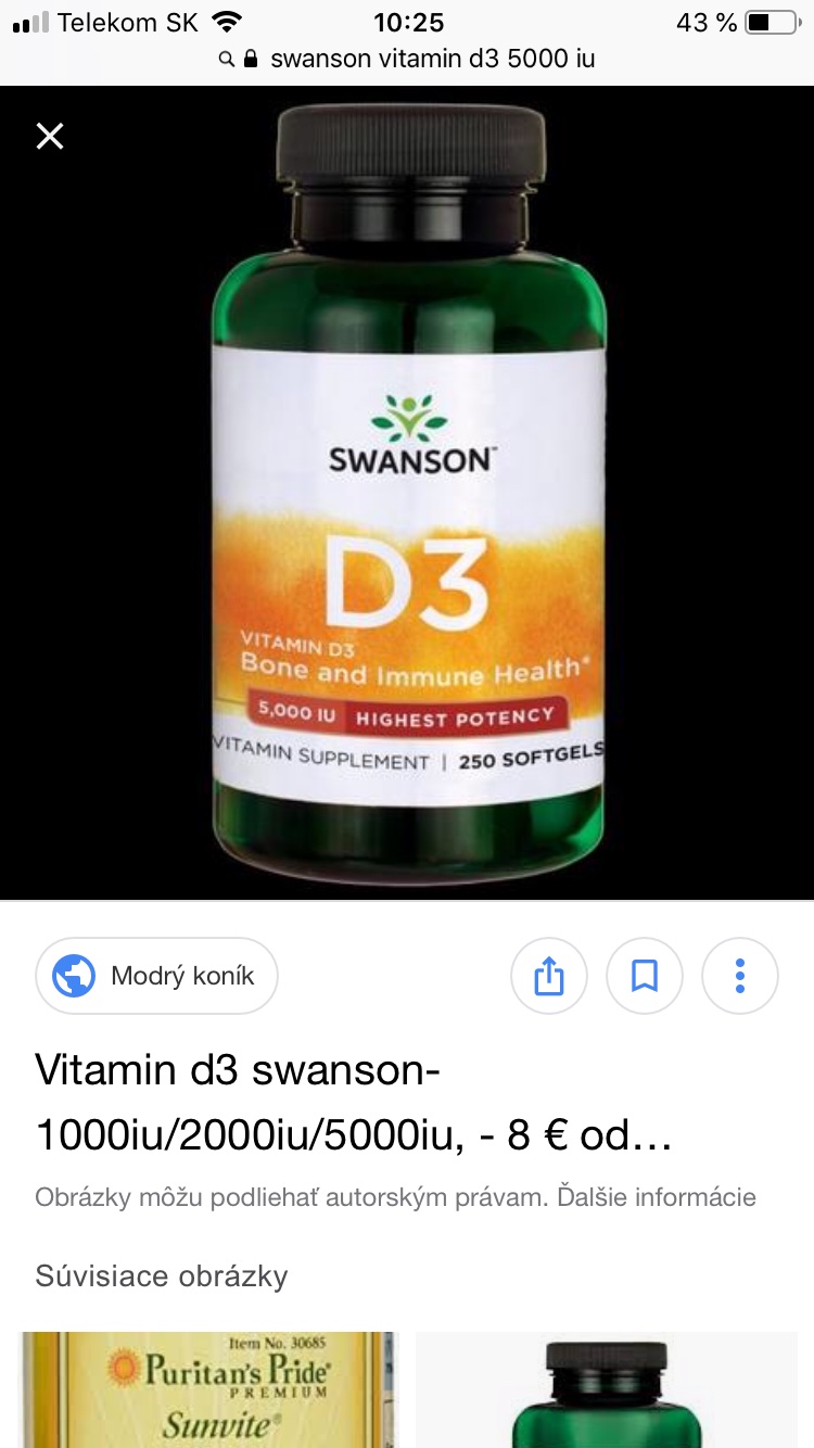@butterfly333 - Kup si presne tie od swansonu co ceklis ponuka. J asom mala velmi nizku hladinu D3, ze doktor i povedal,ze taku nizku ani nevidel doteraz. Brala som Swanson 5000 a upravilo sa mi to za mesiac a pol.