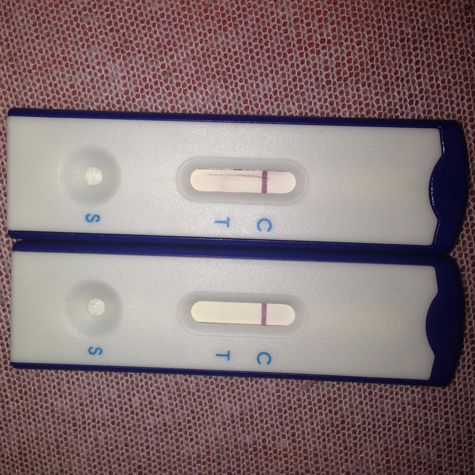 ahojte baby, som tu dnes nova prihlasena ... v july som bola na laparke - kontrolnej ci vsetko mam OK, vsetko dopadlo OK som zdrava vsetko priechodne..., ms po laparke mi prisiel na 33dc , lebo ked mi to prave robili mala som ovulaciu ja ju mavam neskor na 19dc, a dnes som tiez 33dc ma nikde ... brusko ma pobolieva ako na ms od ovulky asi je to aj tym zakrokom a test rapiclear classicextra mi vysiel takto .. ta skoro neviditelna je zo vcera vecera a ta silnejsia je z dneska .. nemam velke skusenosti ztymto testom, myslite , ze moze znacit tehotenstvo? dakujem za nazory