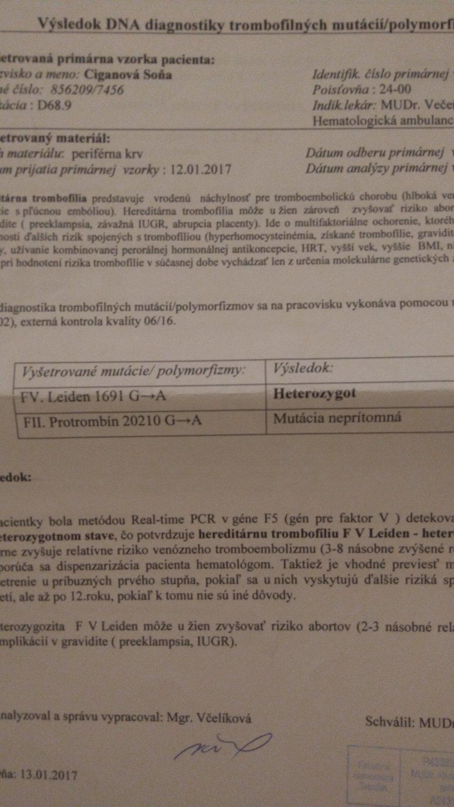 @alilka ja tiež mám ten trombofilny stav ale mutácie asi nie idem kuk čo to mám písané mám kartu doma čo sme boli na genetike 🙂