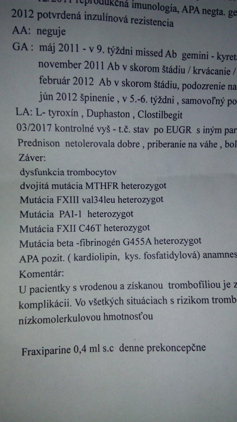 @ejuska2586 no ale ja mám potvrdené tie mutácie aj trombofilny stav..aj v apríli som bola na kontrolu a bolo to tam..takze musím to hneď riešiť..ja fraxiparin už picham len akosi zle na neho reagujem..robia sa mi hrudky,zcervena a svrbí..Anna stehne aj rukách aj bruchu..je jedno ktoré miesto..
