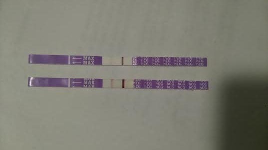 Ahojte je podla vas realne ze klesa hcg?? v pondelok bolo vraj hcg 1569 - vrchny test, vcera bola hodnota vraj 111. nezdalo sa to lekarke ani sestricke, tak som bola na krvi aj dnes. Vysledky budu ale az poobede a nevydrzala som a robila si dalsi test rano - ten spodny. V skutocnosti su este trochu tmavsie ako na foto...