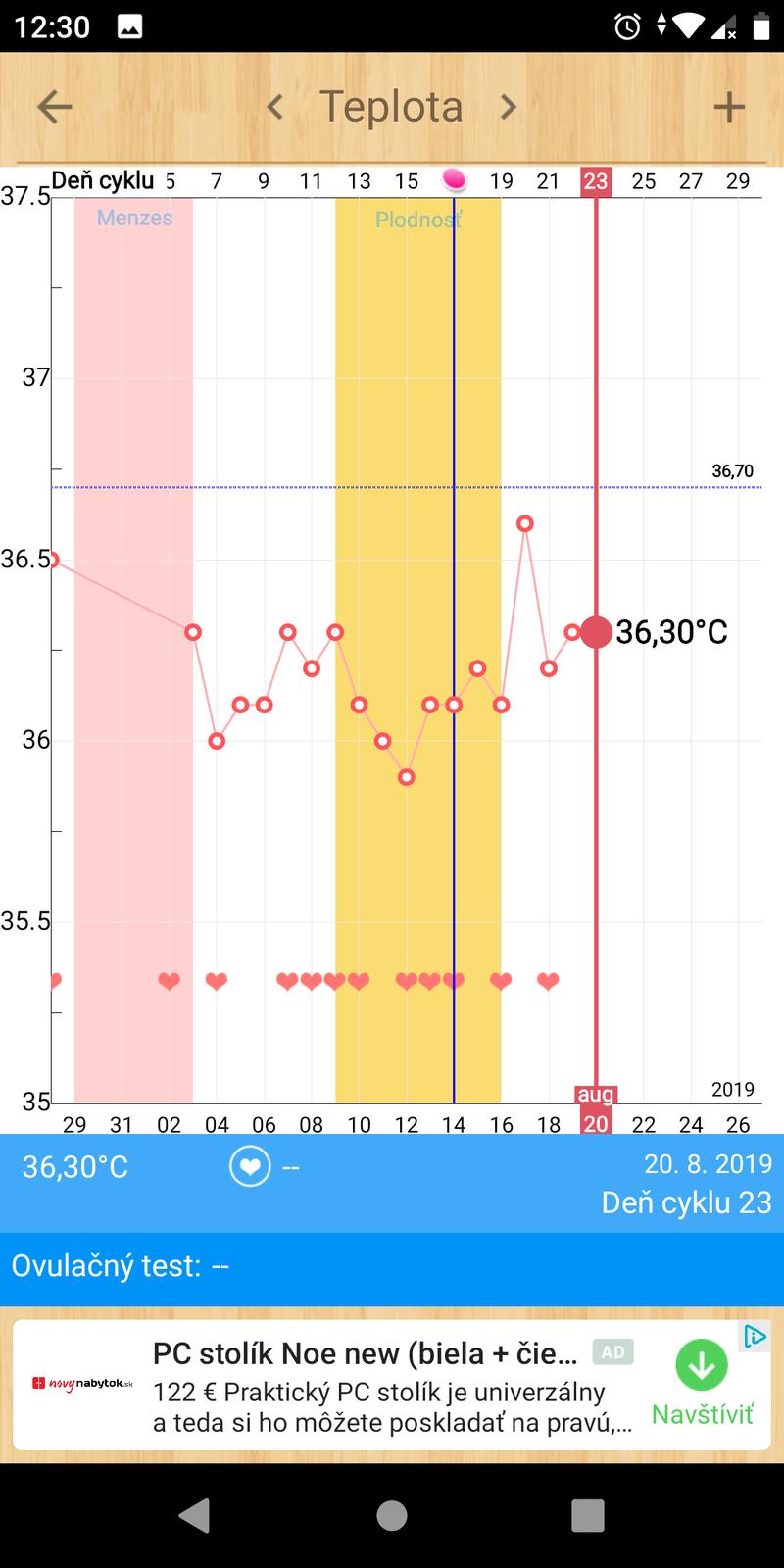 Skus si stiahnut aplikaciu fertility friend. Ta to vyznacuje sama, v tejto co mas ty sa zle orientuje. Ale podla grafu sa aj mne zda, ze ovulacia neprebehla.