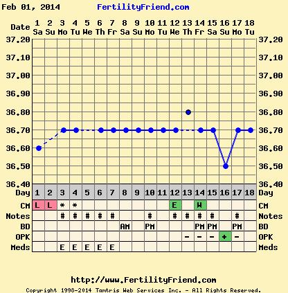 ahojky děvčata, sleduji vás už delší dobu, ale až dnes píšu, neberu antikoncepci už 3 roky, z toho 2 se nechráníme, ale zatím se mi nepodařilo otěhotnět, doktor tvrdí, že jsem v pořádku, mám pravidelné cykly po 30 dnech, ale děsně bolestivé a hodně slabé, cca 2 dny, vystačím si s intimkami, přítele k spermiogramu asi nedonutím, tento měsíc jsem zkoušela izoflavony (Estrovone), mrkněte se, co mi to udělalo s grafem, poprvé jsem ale měla silně pozitivní ovulační test, připadá vám to normální? děkuji