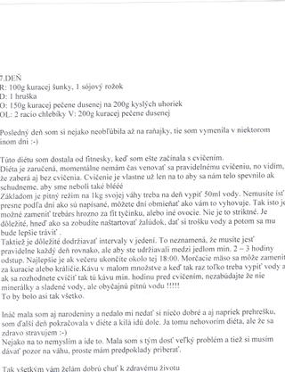 A potom takú na 2 týždne a predpísaný jedálniček.