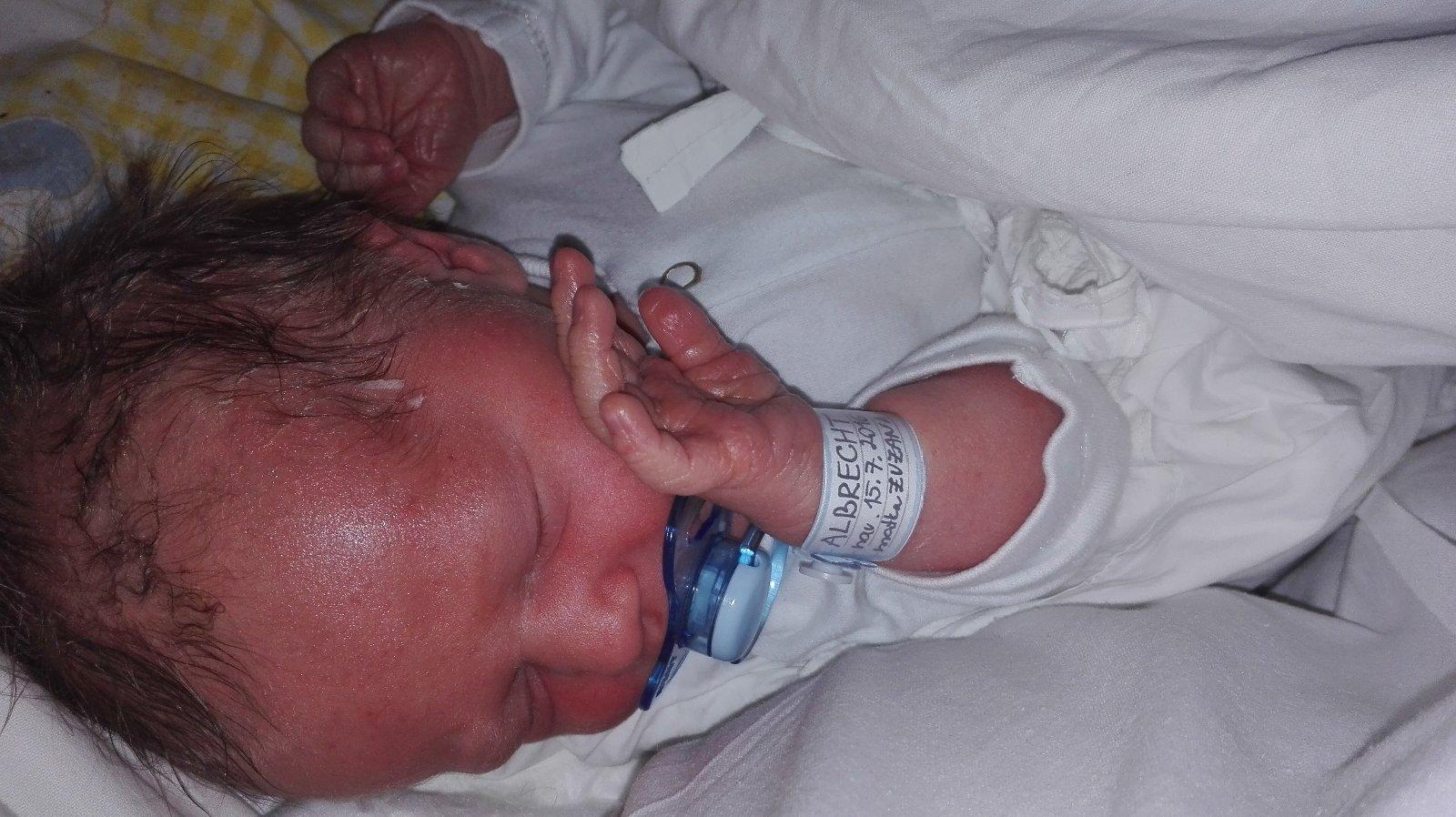 Babulky dakujem kazdej jednej z vas co ste tu keby sa dalo kazdu asi,vystiskam osobne!Cely cas som verila davali ste mi,silu posuvali ma dalej ked bolo najhorsie vazim si to mooocccc ze sme tu spolu.Ano rano na pol 9som mala ost.na kontrolu k mojmu porodnikovi no,stretli,sme sa o trosinku skoro 5:30 sme tam cca dosli takze ma pekne odrodil.Strasne mi pomohol aj sestricka aj manzel neslo mi von som sa trapila skoro 40min.A tu je slubene foto Maximka je uplne dobrucky este neplackal.