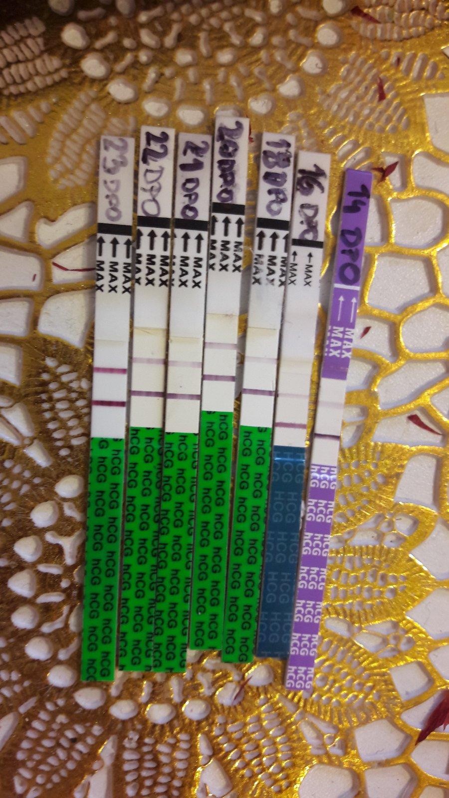 @katarinka2185 na tom teste ma byt 15 dpo...14 dpo som mala len jednu ciarku. Pomylila som sa ...ukazalo mi to az den pred meskanim ms ;)