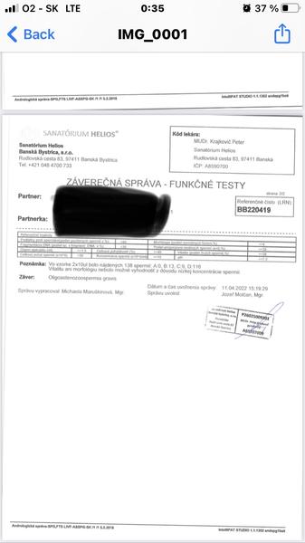 Ahojte. Priateľ bol na spermiograme ale výsledky sú vraj zle. Ja sa do toho nerozumiem. Záver je Oligoastenozoospermia. Myslite že by mohlo pomôcť zlepšiť spg vitamínmi? Mate dakto skúsenosť? Ja mam pcos a bez ovulácie. Tak sme chceli skúsiť clostybergit najprv ale keďže výsledky spg sú hrozné takze mi to dr nepredpise. Prikladám aj foto výsledkov. Ďakujem za odpovede