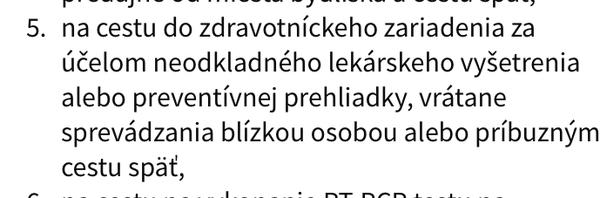 Len chcem upozornit na jedno - presne ako @galixx hore uviedla - "cesta do zdravotnickeho zariadenia za ucelom neodkladneho vysetrenia alebo preventivnej ...."
