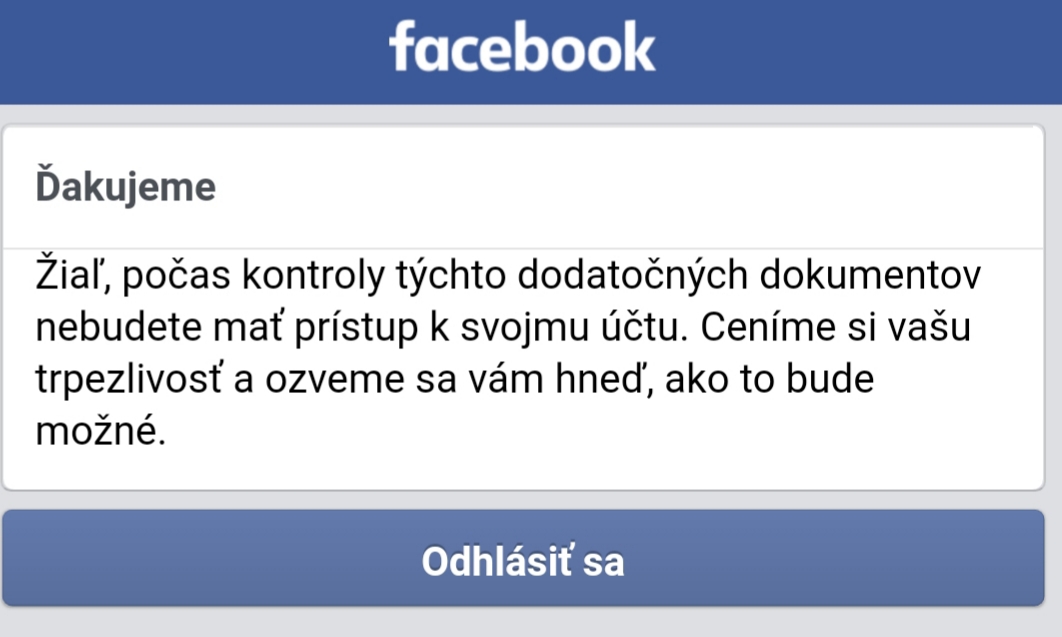 mne pred casom takto vymazali na fb ucet.. zevraj z neho praktizujem nekalu cinnost 😀 (pouzivala som ho len na hranie hier) a mam poslat fotku op, aby si overili moju totoznost, lebo inak ucet zrusia.. neposlala som, zrusili