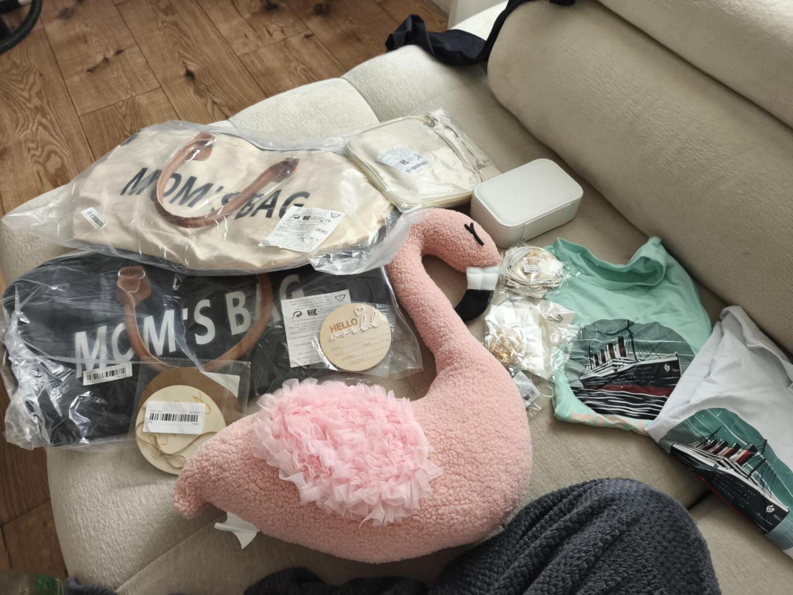 Objednala som prvýkrát pretože mi prišiel 20€ kupón 🤣 tak som to využila. Dnes mi prišiel obrovský balík: úložný box na sezónne oblečenie, 2x mom bag - súprava 3ks (taška, kozmetická taštička a puzdro na drobnosti) organizér na kozmetiku - do pôrodnice, šperkovnica, nejaké drobnosti na fotenie bábätká, prívesok na kabelku, šnúrka na telefón, veľký plyšový plameniak na newborn fotenie, pre syna tričká s titanicom - iba preto že Titanic miluje a nedajú sa zohnať v normálnych obchodoch + pre mňa 2 klobúky na leto. Za 20€ som viac než spokojná 😀🤌🏼 je to lákavé za tie ceny ale nerada sa zahlcujem somarinami. Raz stačilo ☺️