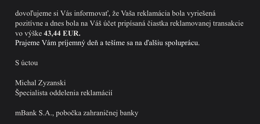 @denulka666 Mne banka ziadny poplatok neuctuje - je to reklamacia