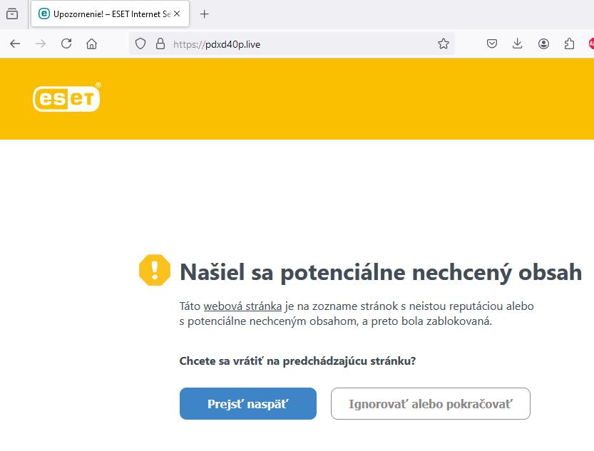 Doména pdxd40p.live vznikla teraz v auguste https://www.whois.com/whois/pdxd40p.live antivírus varuje pred podvodom