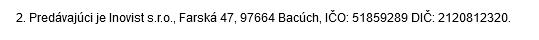 Predávajúci je Inovist s.r.o., Farská 47, 97664 Bacúch, IČO: 51859289