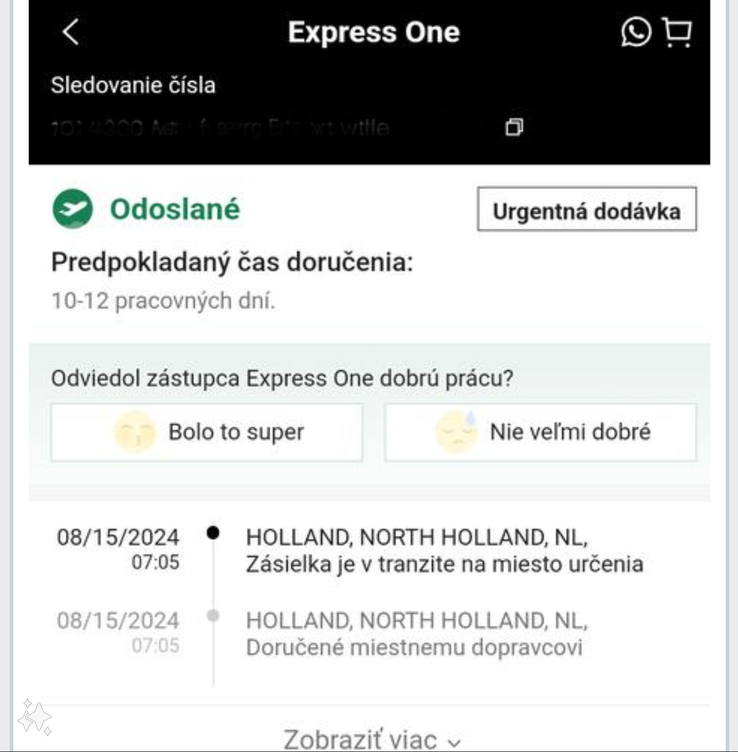 Resp teraz to pozerám, a pred prijatím mi ide balík vždy cez dve depa v Maďarsku. Možno teda toto tvoje potrvá dlhšie. Kedy si objednávala?