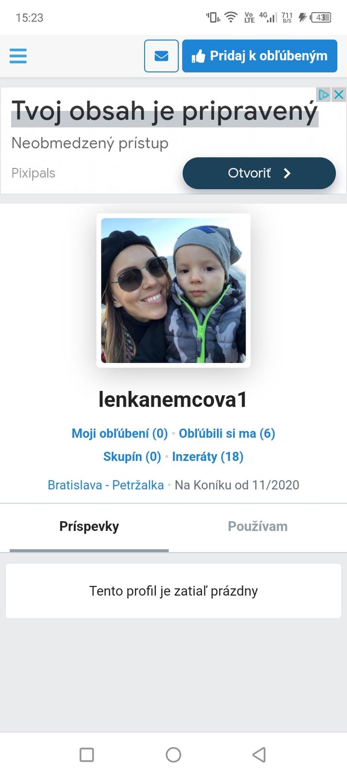 Dobrý deň.Nemate niekto kontakt na mamičku lenkanemcova1.Rad by som od nej niečo kúpil,ale už skoro mesiac mi neodpisuje na správu ku inzerátu(asi to ešte nečítala) ak ju teda nikto poznáte dajte jej prosím vedieť,že má správu na konikovi.Velmi pekne dakujem.Pekny deň prajem