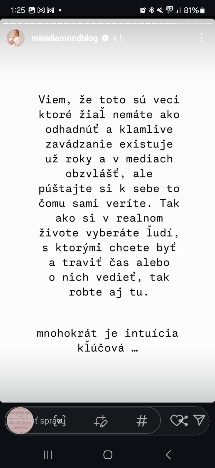 Ona je strasne trapna a kedze nema lajky a komenty na IG na prispevkoch tak dava sutaze ala ze daruje nieco len sa jej treba ukazat ze pridat koment alebo dat lajk. Take prehliadnutelne ze konec. Nedavno jej niekto napisal odpisuje arogantne ci nieco take a hned davala anketu ze ci je arogantna 🤣🤣🤣 a tie deti jak cvixene opice a ako pise ze starsej predlzuje detstvo a nema ani mobil. Ona si niekedy tak k...a do pusy ze konec 🤣