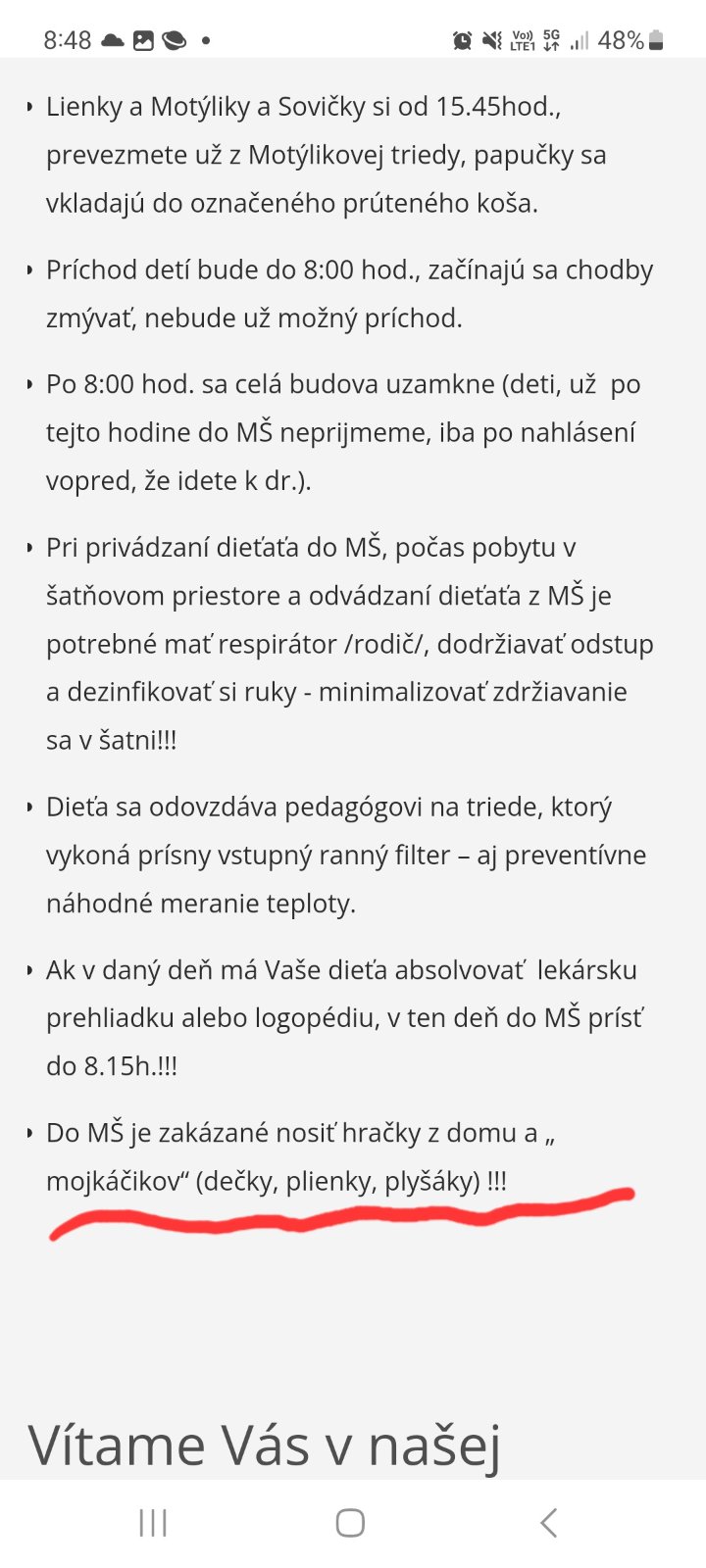 @mamamasama zase nežeňme do extrému všetko a nerobme z deti malých Bohov, čo sa na nich nemôže ani krivo pozrieť a nedajme sa od nich šikanovať. Je iné dať výchovnú po zadku od rodiča ak to inak nejde. V tomto prípade ak dievčatko nechcelo ísť a bolo tam auto, čo chcelo prejsť tak by som aj za ok považovala keby ju chytí za ruky a odtiahne. Ale ona vrieskala, ťahala ju za vlasy, vyzerá že ju udrela do tváre. A to ked videla, že ide auto, sú von ľudia, teda nedokáže sa ovládať ani pred svedkami, čo potom robí za múrmi škôlky? A už len ten jej postoj predtým ako sa to stalo je dosť nepríjemný a veľa naznačuje reč tela, že sa minimálne cíti ako nejaká bachárka, tie ruky vbok, noha vpred. A takisto že vraj sťažnosti na ňu boli a nik nerieši. Pričom podľa mňa dosť veľa žien si teraz kvôli pracovnému času dorába strednú pedagogickú tak prečo aj zriadovateľ sa robí slepý a hluchý a nenarobí tam poriadky ak sa takto učitelia správajú a riaditeľka to vraj toleruje?
