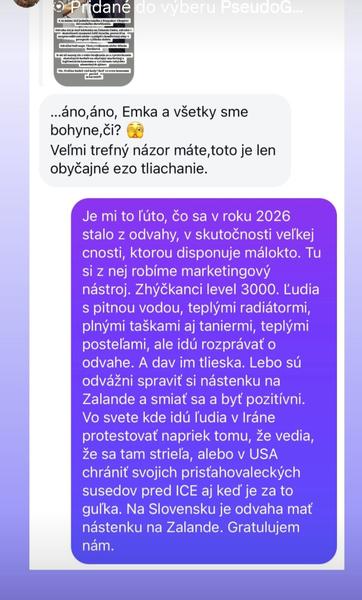 Mne ema nie je nejak extra sympaticka ale ved nech si robi kontent aky chce, je to jej zivot a ma svojich fanusikov, nikomu neublizuje. Ale zuzane musi strasne lezat v zaludku.. az sa zamyslam ci jej nieco nie je. Kto ma v sebe takuto zlost? Ja mozno takeho cloveka s podobnym zmyslanim ani nepoznam. A ten jej pocit vlastnej dolezitosti kedy hlasa svoje myslienky a neexistuje, aby mohol byt aj iny nazor v poriadku, tak to je extrem. Kto si mysli ze je, ze stale moze mudrovat ohladom vsetkych otazok sveta. To je uplne absurdne a na smiech a sledujem ju uz len z recesie a ako pozorovanie tejto podivnej osobnosti😂🙈