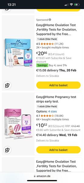 Ahoj síce neviem koľko trvá dodanie na sk ale ja žijem v Nemecku bežne objednávam z amazonu dokonca teraz som mala pri snahe otehotnieť tie testy a musím povedať že sú veľmi spoľahlivé 🙂 takze odporúčam , podľa mna vy ti malo písať niekde aj dodanie na sk pri zadaní objednávky