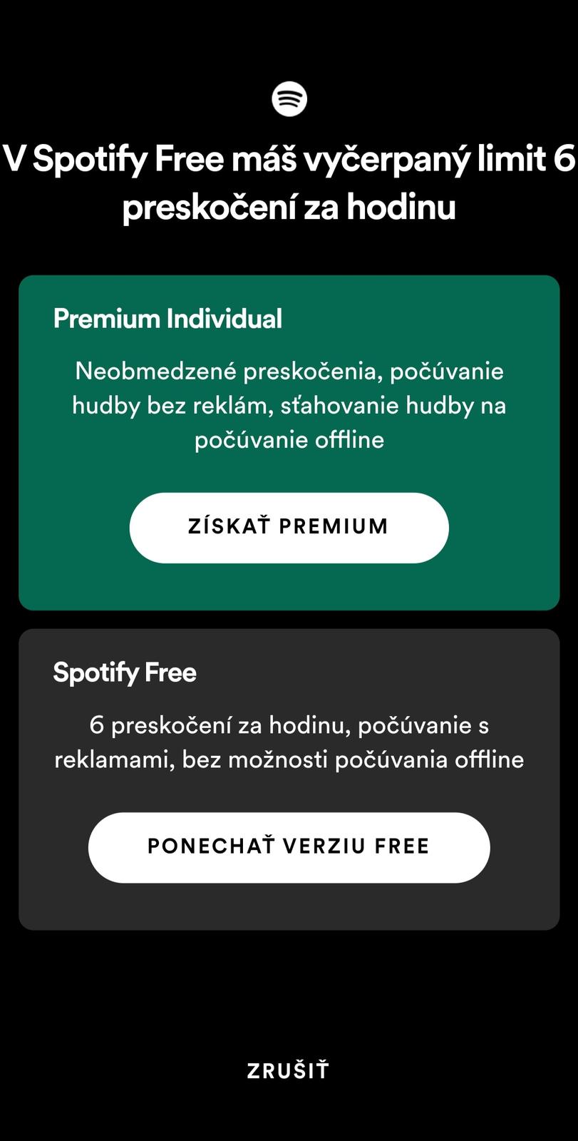 Playlist, ktorý som si sama vytvorila a mám uložený v knižnici mi pustilo od random pesničky bez toho, aby som si vybrala, ktorú chcem vlastne počuť. Keď som sa chcela "preskákať" k tej, o ktorú som mala záujem, vyhodilo mi upozornenie, že hodinu nemôžem prepínať poradie piesní, lebo nie som premium a už som si vyčerpala 6 prepnutí pesničky 😃