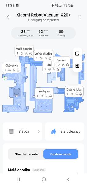 @gab1sol ja som ho vcera 1x pustila.Urobil takuto mapu ale to je len obyvacka a cast chodby.Ked umyval mapa sa dokreslovala ale uz nie takto na modro ale len obrysy.A ked skoncil obrysy zmizli.Tak neviem ako tam dostat zvysok bytu 🤷♀️