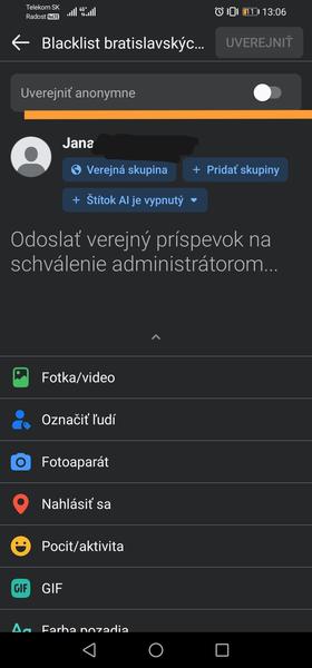 Ja ked zacnem pisat prispevok tak hned hore mam nad tym moznost zapnut anonymne, alebo dokonca este pred pridanim je tam take ze +anonymny prispevok..
