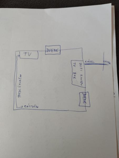 @maranco prosím ťa. Toto je izba. Tam kde je telka, nie je zastávka na elektriku, čiže budem mať predlžovacku. Tam kde je napísané wifi router som chcela dať teda ten router. Ale teraz tam mám ten tv box ako vravíte. Teraz ako mám ten box dať k telke? Dúfam, že sa to dá cez wifi, lebo nechcem telku presúvať k tomu boxu.