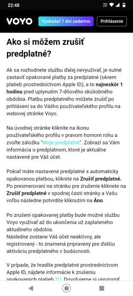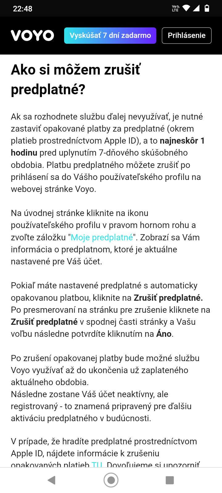 Ako zrušiť predplatné na Voyo, ktoré som robila cez O2?