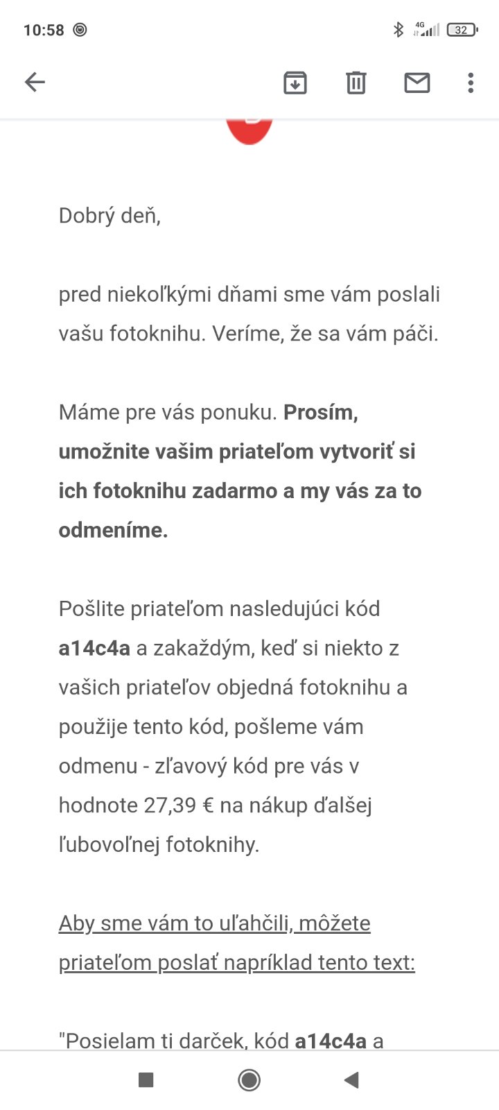 @domka1019 je to tak ze ten kod plati len na jednu fotoknihu ak ju este nemas od nich ak ju mas uz ti nepojde kod 😔 ale mozes si ho dat napriklad urobit k nejakej rodine na ich adresu ale zaplatit to musia oni 😔 inak sa to neda 😔 je to od nich reklamny tah aby si co najviac ludi oskusalo od nich knihu a potom tak si prilakali viac ludi k sebe 😔
