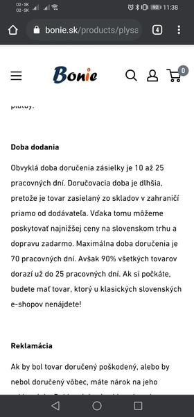 Zdravim...chcem sa podeliť aj ja so svojou skúsenosťou s bonie.sk...neobjednavajte si odtial je to podvod..objednala som bábiku za 69,90e...a podľa nich už mi bola doručená..ale ja som nič nedostala..a už mi ani neodpovedajú na e-mail..z Aliexpressu Vám tovar príde keď aj za dva mes.ale odtiaľto nič..nemám ani peniaze ani tovar..v banke mi povedali že môžem podať reklamáciu zaplatim 15e a oni ich vyzvú aby mi peniaze vrátili ..ale keďže už neodpovedajú ani na email tak pochybujem že by reagovali na toto...idem na políciu podať trestné oznámenie..
