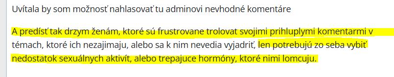 Uvítala by som možnosť nahlasovať tu adminovi nevhodné komentáre