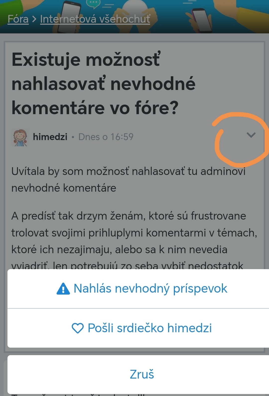 Existuje možnosť nahlasovať nevhodné komentáre vo fóre?
