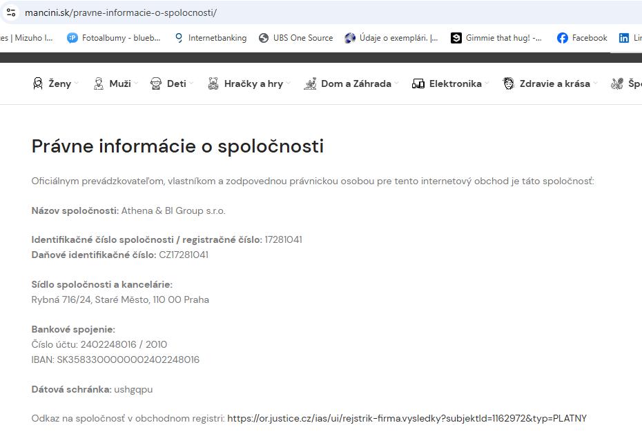 "Prevádzkovateľ platformy mancini.sk nie je predávajúcim tovaru"